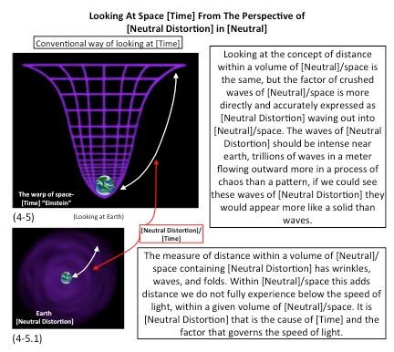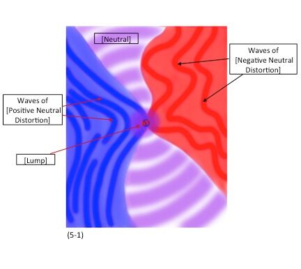 The [Neutral]’s volume is being distorted at locations of greatest [Super-Vacuum Energy]; this is causing the volume of [Neutral] to have [Neutral Distortion] within itself, an effect of adding waves/folds in the [Neutral]. As [Neutral] is forced to expand and wave into some areas, it is also being stretched to a greater volume in other areas. This process creates [Positive Neutral Distortion] waves and [Negative Neutral Distortion] waves in equal quantities.