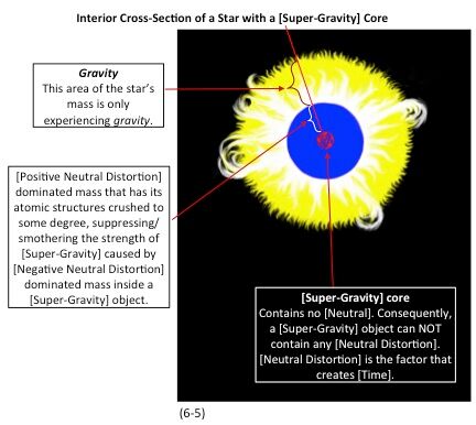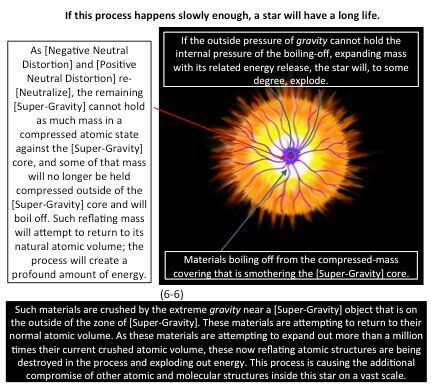 If a large enough amount of [Positive Neutral Distortion]/mass is released from the grip of [Super Gravity], that [Positive Neutral Distortion]/mass will explode. If this happened on a large enough scale inside a star, that exploding mass could potentially build up over millions of years, eventually reaching a critical point in a star’s structure so vast that that star’s mass could no longer contain the amount of the exploding atomic force from the [Positive Neutral Distortion]/mass boiling off its internal [Super-Gravity] core, causing such a star to explode.