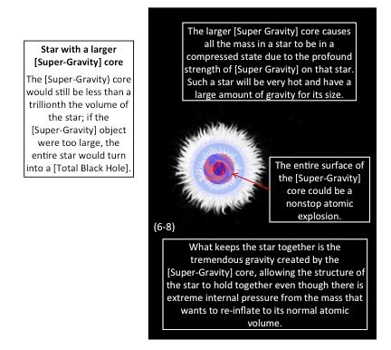 Note: the [Super-Gravity] object in a star would be far less than 1 trillionth the size of that star; if the size of the [Super-Gravity] object approached anything close to trillionth the size of the star it would turn the entire star into a black hole.