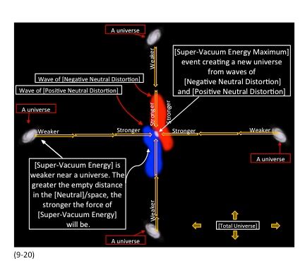 [Super-Vacuum Energy] is the vacuum that is generated in the empty/zero pre-mass [Total Universe]; [Super-Vacuum Energy] may have little or nothing to do with how we understand a vacuum to exist, but for the purpose of description, a vacuum is the best descriptive word. [Super-Vacuum Energy] is the result of an empty volume of space/[Neutral] having the nature to generate a pulling force, a force with the properties of a vacuum.